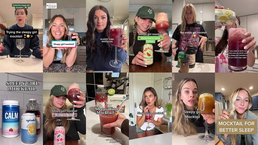 這款 Sleepy Girl Mocktail 從字面上來看,便可推敲它與睡眠的關聯,而其配方則包含酸櫻桃汁 (Tart cherry Juice)、鎂粉 (Magnesium powder) 及益生元蘇打水 (Prebiotic soda) 等簡單成分。根據媒體報導,這款飲料配方最早是由一位 TikTok 用戶「Calee Shea」所提供,後來經由網紅「Gracie Norton」分享而爆紅,並表示酸櫻桃與鎂幾乎是天作之合。