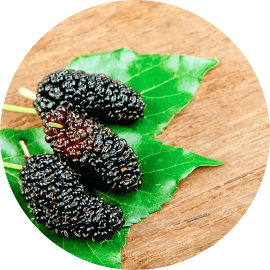 此外,其富含生物鹼與類黃酮等活性物質,亦有調節血糖與血脂的作用 [1]。臨床研究指出,桑葉萃取物則能夠抑制食物澱粉的消化吸收,不僅有助降低飯後血糖,亦可減少澱粉熱量的攝取 [2]。