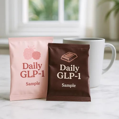 「D3R 纖盈奶昔代餐包」是一款主打體重管理的代餐概念商品,同樣以黑醋栗 D3R 花青素為主軸,藉由促進 GLP-1 分泌來幫助控制食慾及血糖。奇亞籽富含水溶性膳食纖維,遇水膨脹能夠延長胃排空時間,帶來長效飽足感;燕麥纖維則可幫助調節腸道菌叢,進而加強代謝活力。添加中鏈脂肪酸 (MCT) 以促進能量轉換,並有助減少脂肪堆積。整體配方濃郁滑順,採莓果與可可風味設計,可為上班族提供營養均衡、風味佳的代餐選擇。