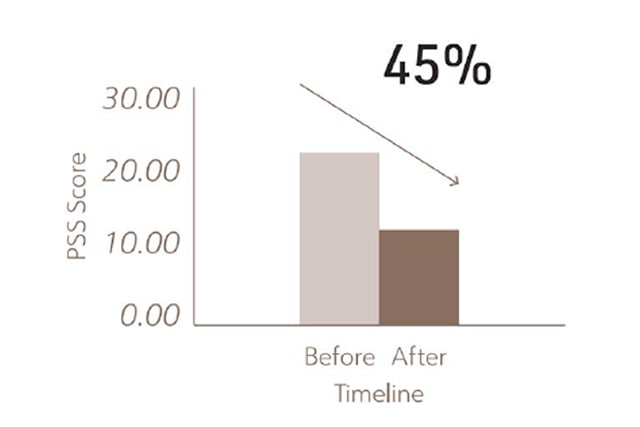 臨床研究指出,Restake™ 能夠幫助降低壓力知覺量表 (PSS) 及漢密頓焦慮量表 (HAM-A) 的評分指數,同時也幫助減少壓力荷爾蒙 – 皮質醇 (Cortisol),提供更客觀的科學支持。